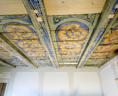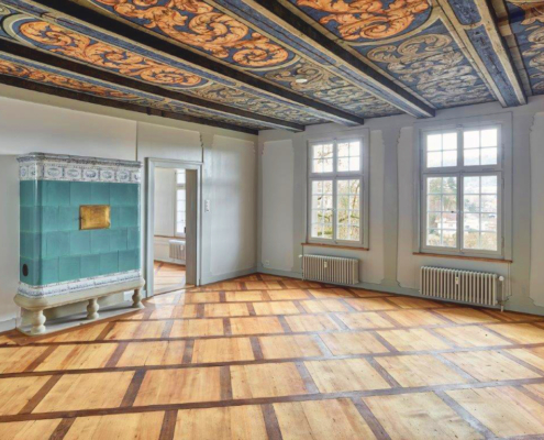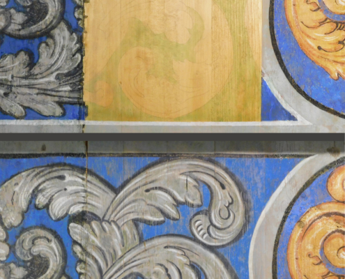 Dienstleistungen Stratigrafische Untersuchungen der Räumlichkeiten, Entwicklung eines Farbkonzepts und Beratungstätigkeiten, Konservierung/Restaurierung und teilweise Rekonstruktion einer Deckenmalerei um 1700
