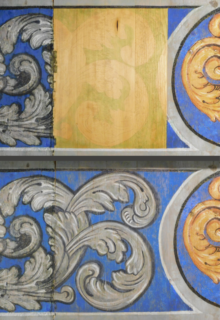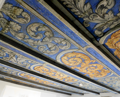 Die Decke schafft jedoch auch ohne das originale Täfer einen stimmungsvollen Raum und beeindruckt durch ihre intensive Farbigkeit. In einer aufwändigen Restaurierung wurde die Malerei gereinigt, gefestigt und retuschiert. In einigen Bereichen, wo Bretter neu eingepasst werden mussten, wurden die dekorativen Ranken rekonstruiert.
