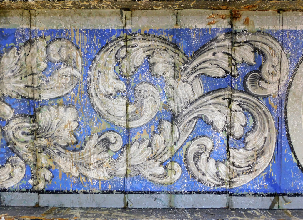 Die reiche barocke Rankenmalerei auf leuchtend blauem Grund gehörte ursprünglich zum, nicht minder spektakulären, sogenannten „Göttertäfer“, welches dem Raum seine Bezeichnung „Götterzimmer“ verlieh. Das aufwändig bemalte Grisaille-Täfer zeigt Figuren aus der Skulpturensammlung des Sonnenkönigs Louis XIV. Es ist zwischenzeitlich eingelagert.