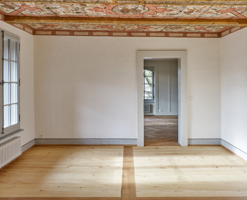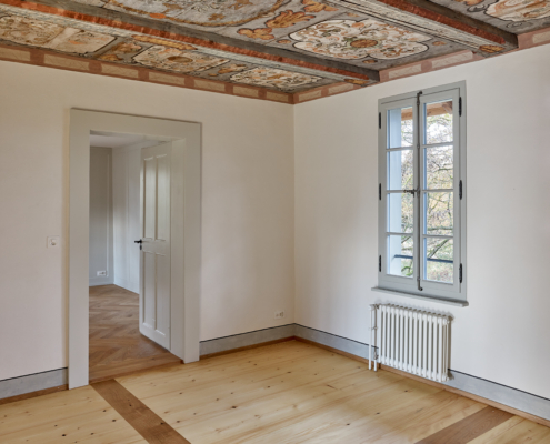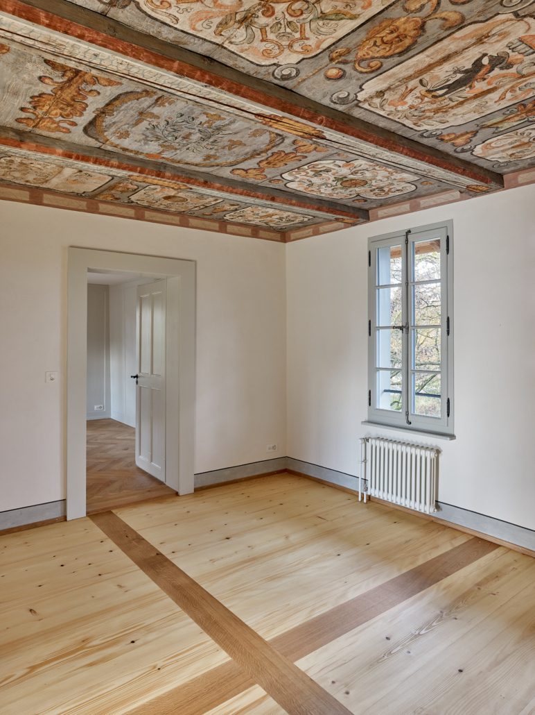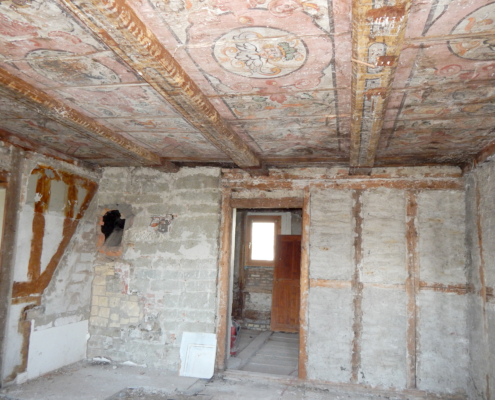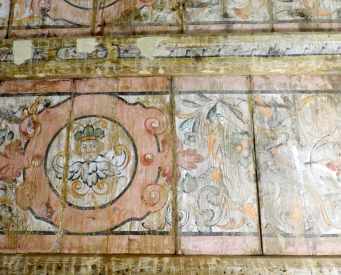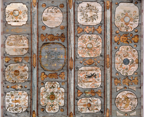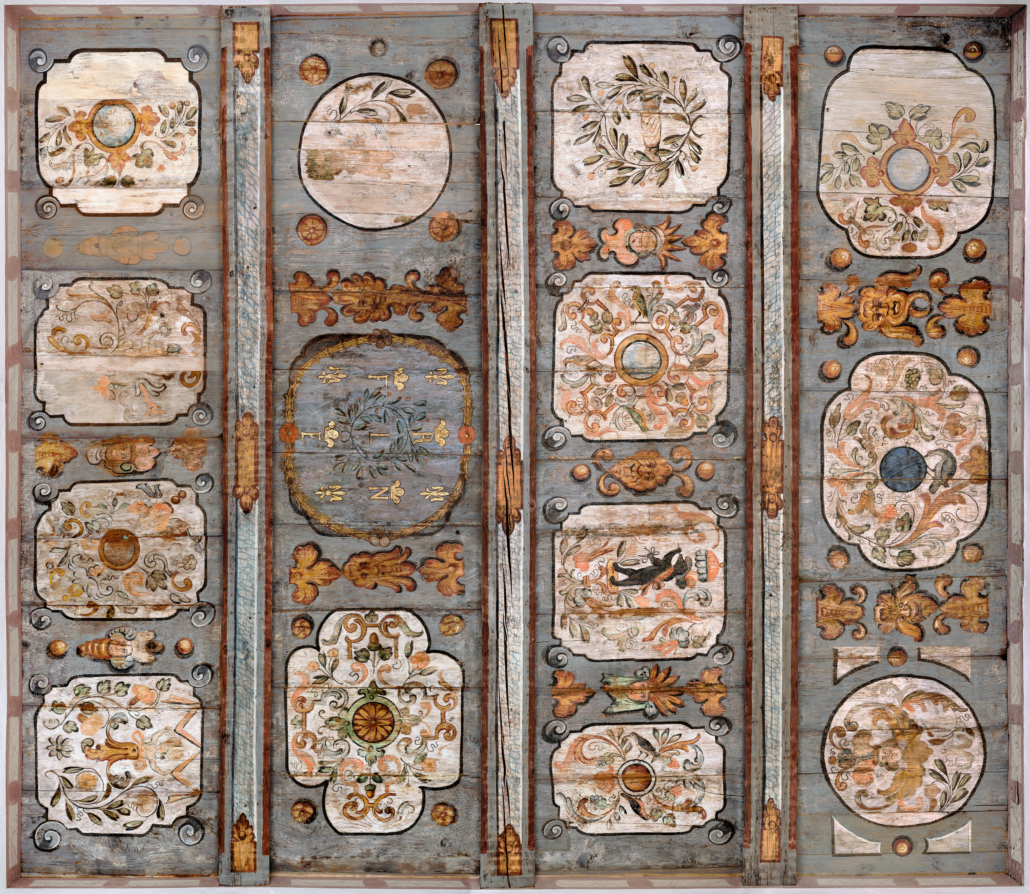 Dienstleistungen Reinigung, Konservierung, Restaurierung und teilweise Rekonstruktion zweier frühbarocker Deckenmalereien um 1640.