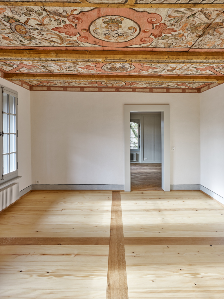 Vom ehemaligen Saaligut ist heute nur noch der sogenannte Saalistock erhalten. Dieser beherbergt jedoch zwei aussergewöhnliche, kulturhistorisch bedeutende Schätze. Zwei, bis dato von jüngeren Gipsdecken verdeckte, nur in kleinen Ausschnitten bekannte Deckenmalereien aus dem 17. Jahrhundert, wurden bei der Gesamtsanierung 2020 wieder zum Vorschein gebracht. Bei der anschliessenden Restaurierung wurden die Malereien sorgfältig gereinigt und, wo nötig, retuschiert und ergänzt.